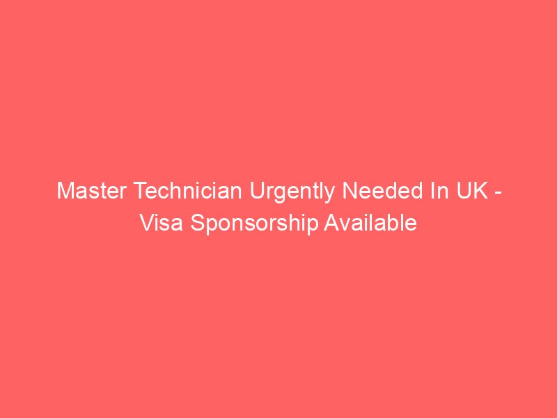 Master Technician Urgently Needed In UK – Visa Sponsorship Available